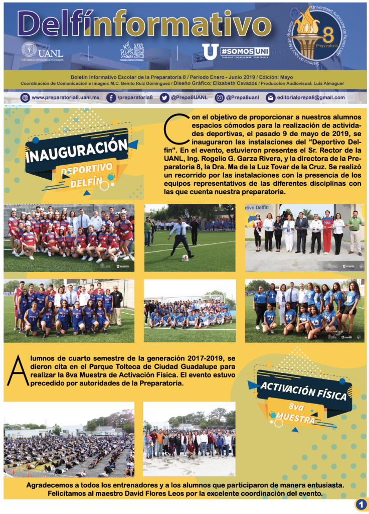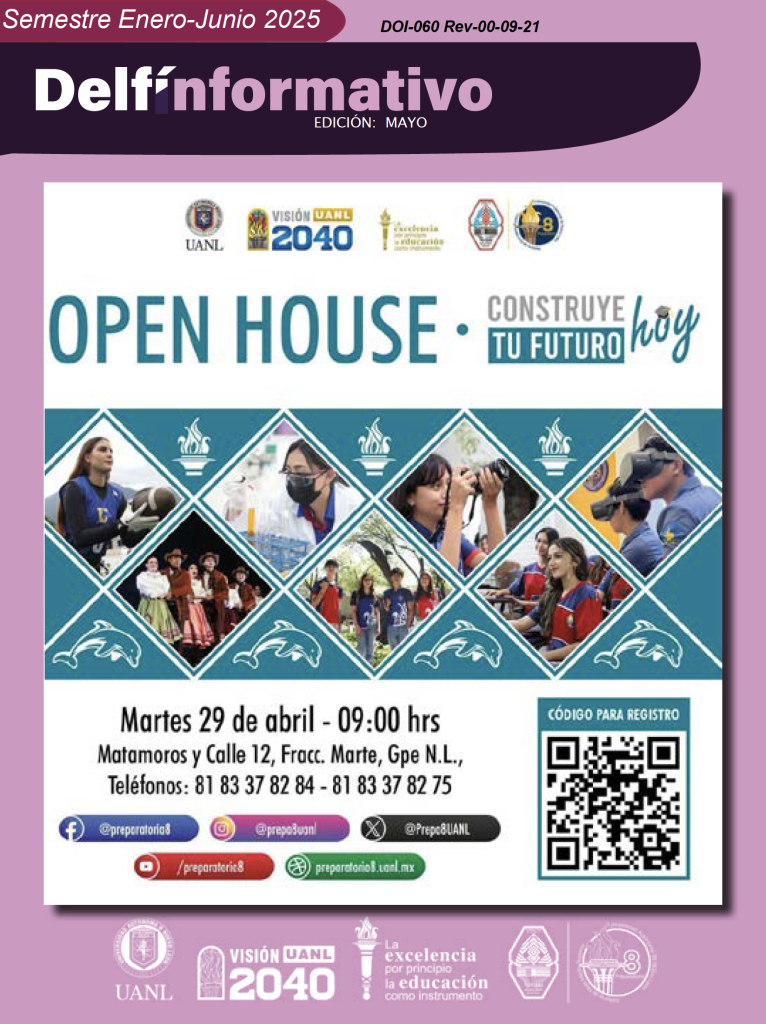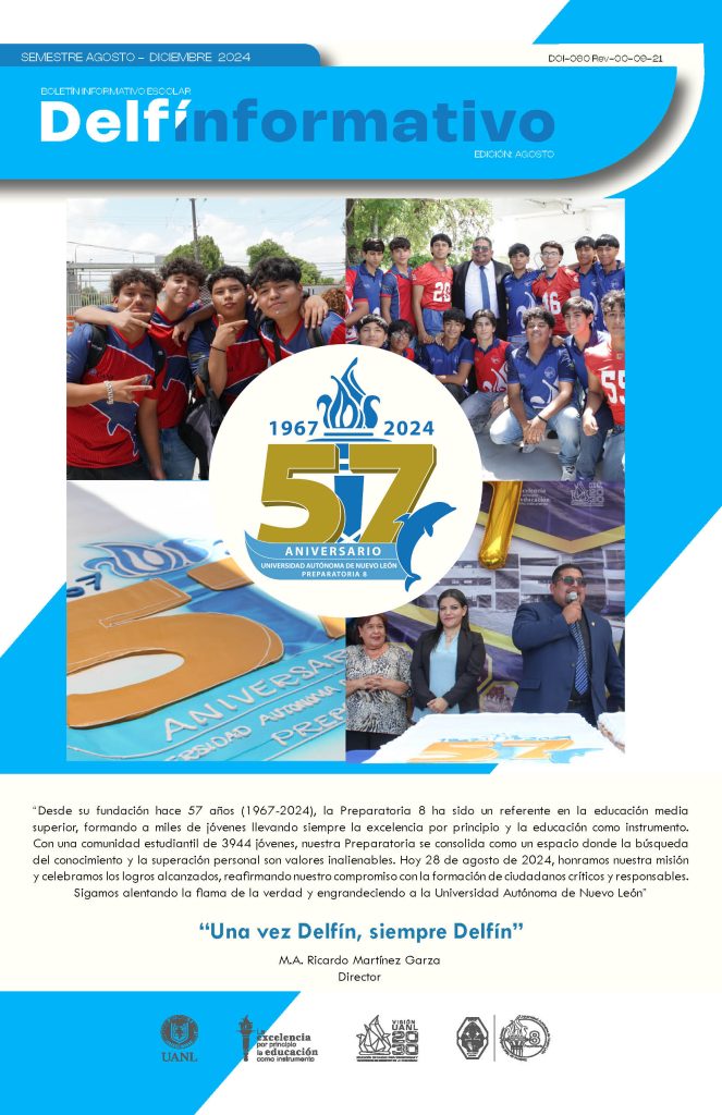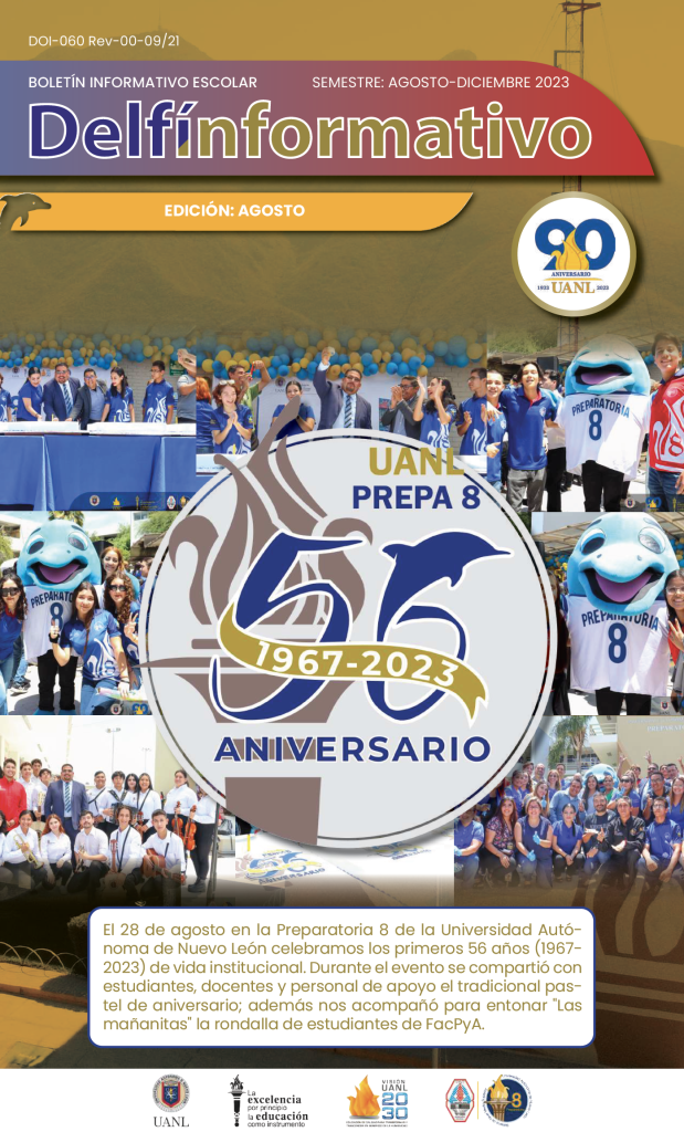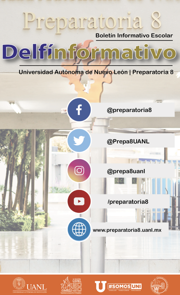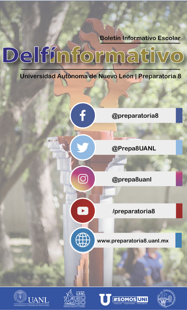El boletín digital “Delfín Informativo” tiene el propósito de conservar la memoria institucional con la recopilación de noticias y avisos publicados en diversos medios de comunicación con los que cuenta la Preparatoria 8. Durante el semestre se publican cuatro ediciones (2025) con los eventos realizados en la Preparatoria 8 durante el mes anterior, y se anuncian los eventos por realizar en el mes siguiente a su publicación.