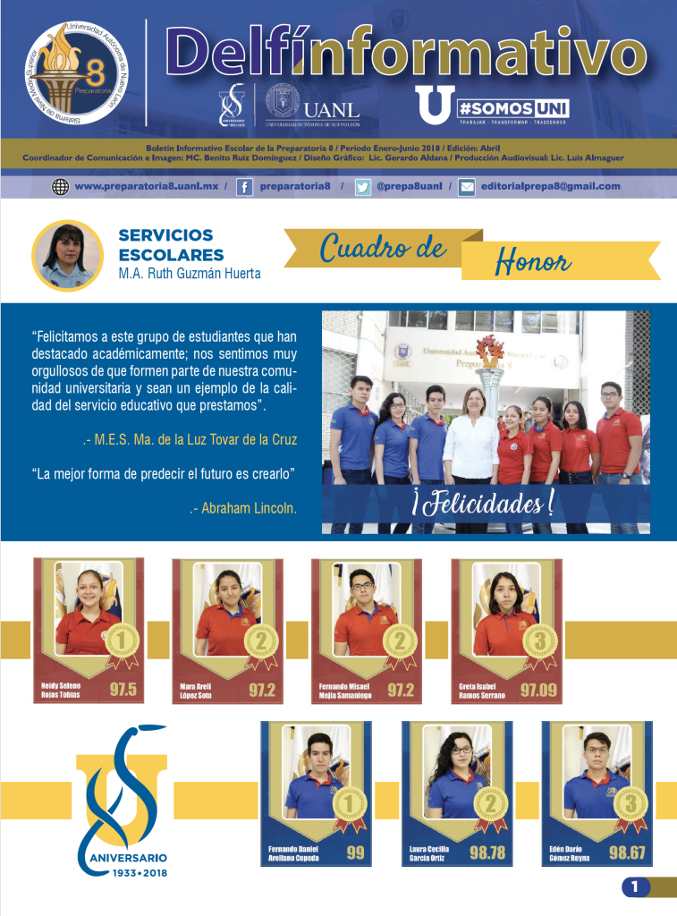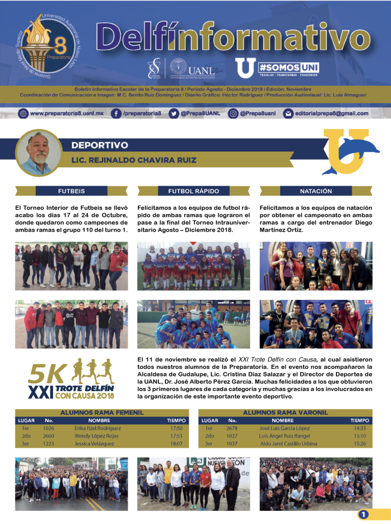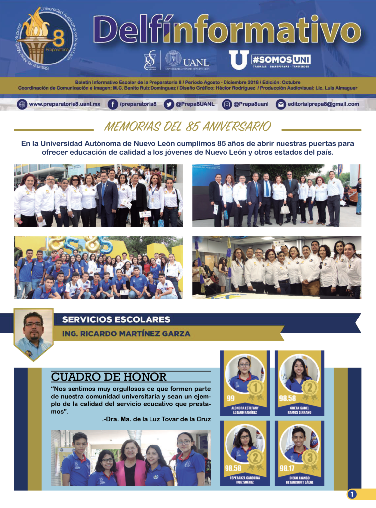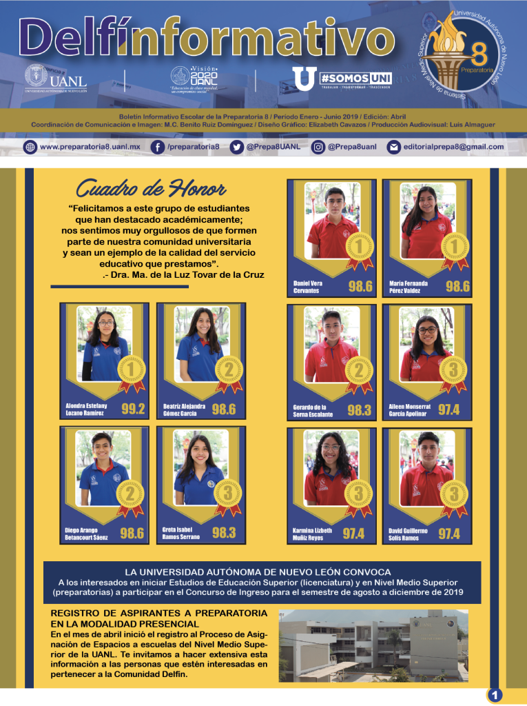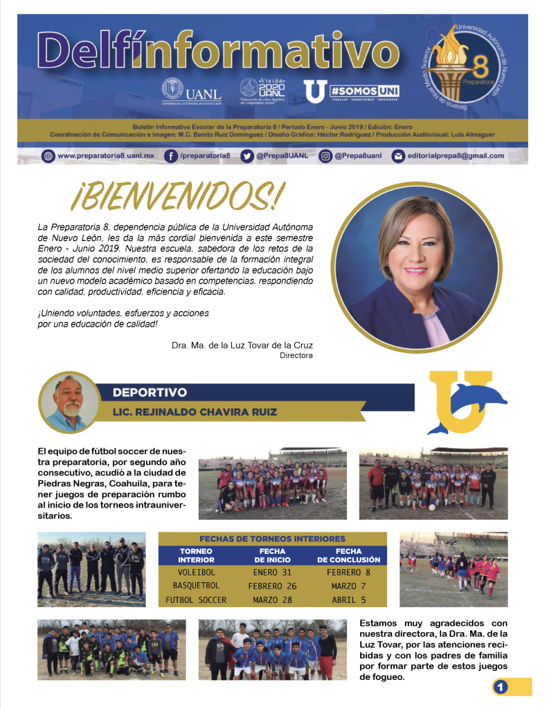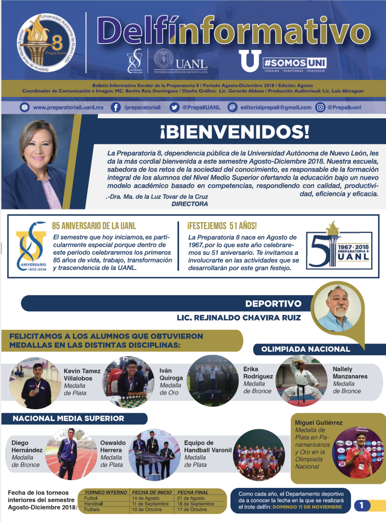 El boletín digital “Delfín Informativo” tiene el propósito de conservar la memoria institucional con la recopilación de noticias y avisos publicados en diversos medios de comunicación con los que cuenta la Preparatoria 8. Durante el semestre se publican cuatro ediciones (2025) con los eventos realizados en la Preparatoria 8 durante el mes anterior, y se anuncian los eventos por realizar en el mes siguiente a su publicación.