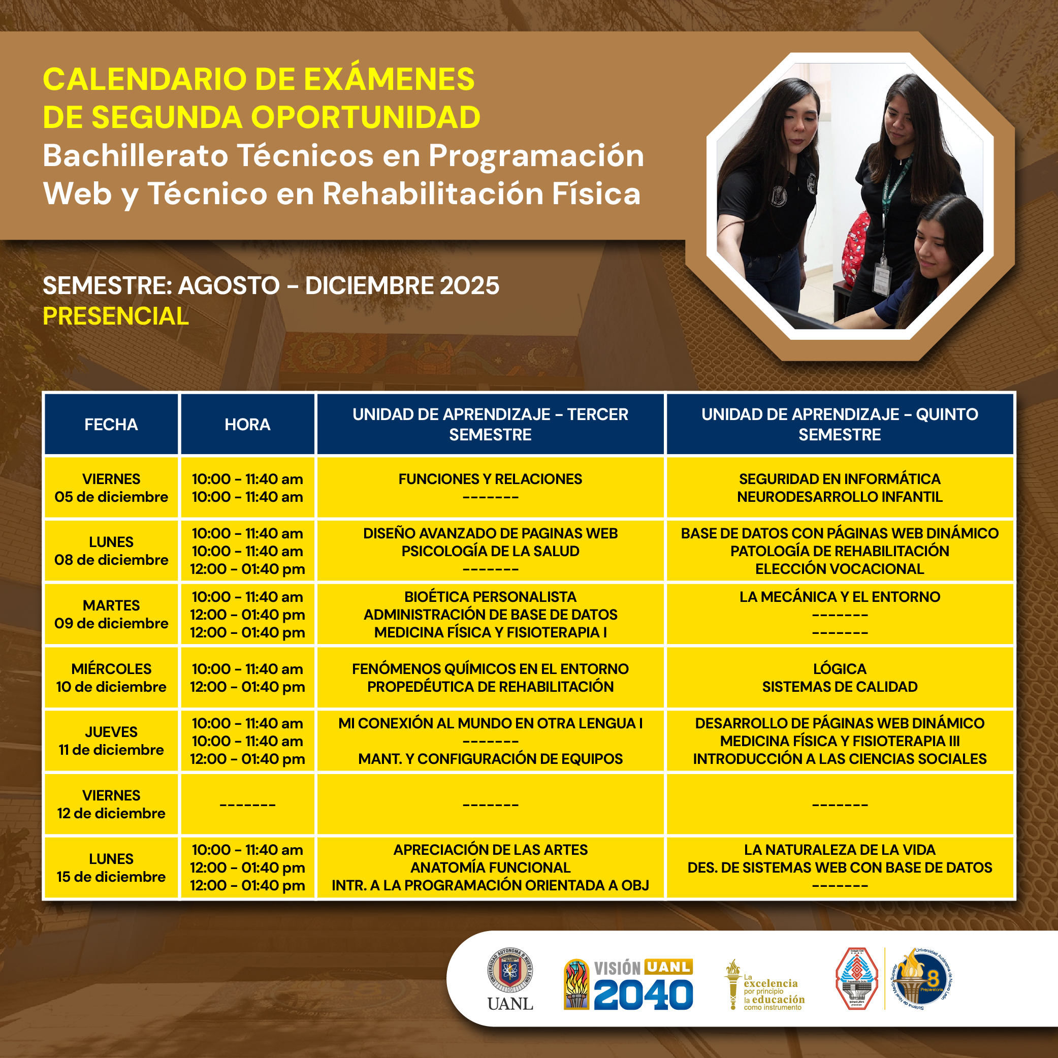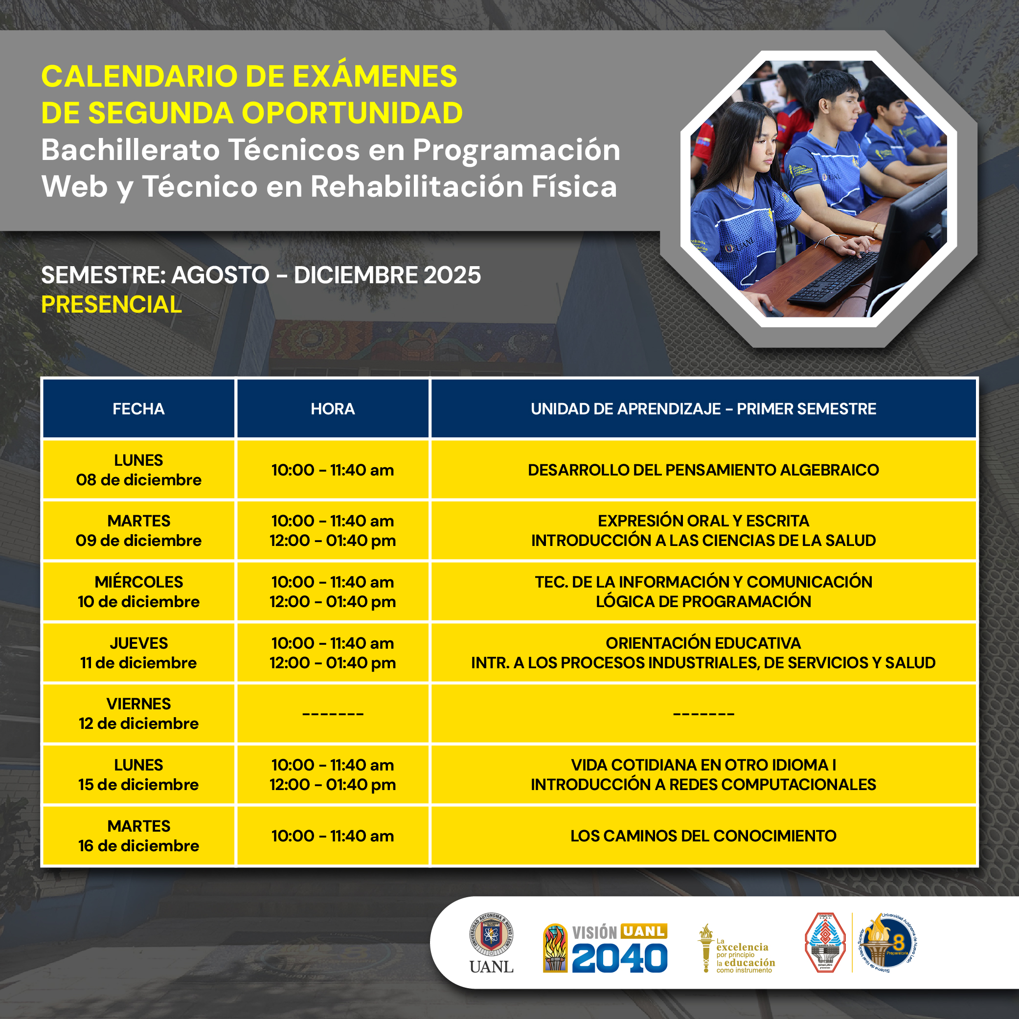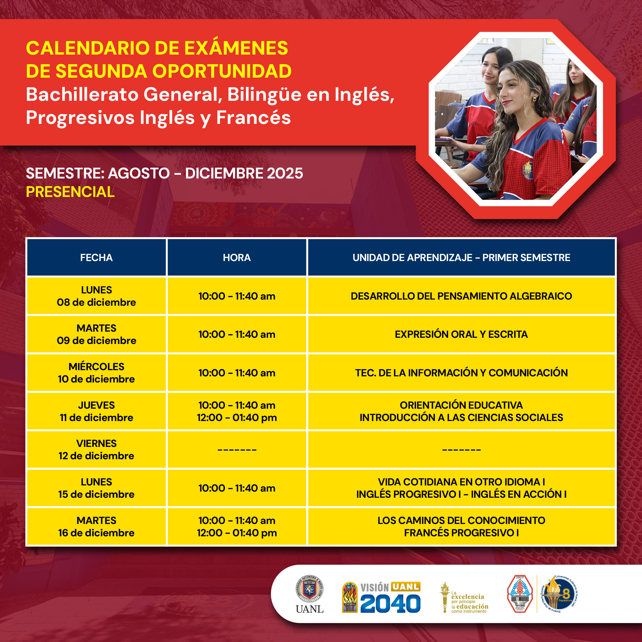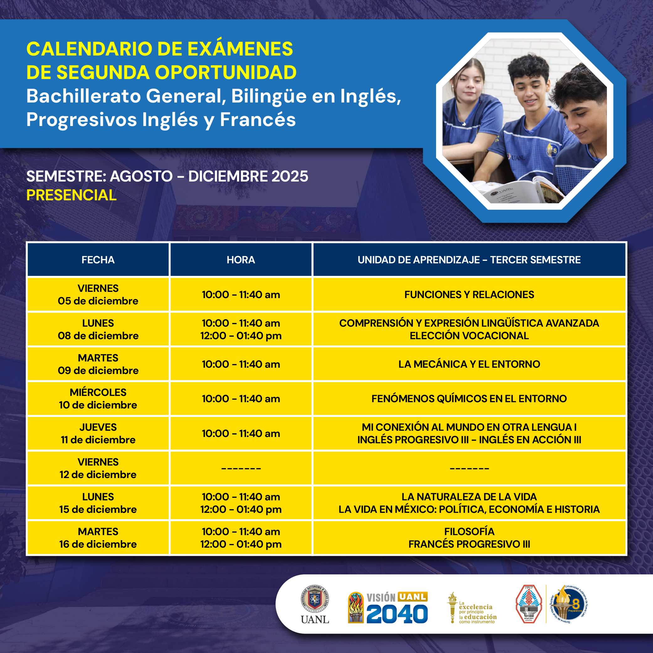 Calendario para Bachillerato General, Bilingüe en Inglés, Progresivos Inglés y Francés